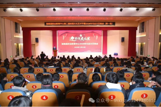 银铃辞旧岁,欢歌迎新年。12月23日,在2026年元旦佳节即将到来之际,商洛市洛南县职业教育中心第二届校园文化艺术节暨元旦文艺晚会第一场在校园内精彩上演。全校师生欢聚一堂,用歌舞传递喜悦,用朗诵抒发情怀,共同奏响了一曲辞旧迎新的青春乐章。