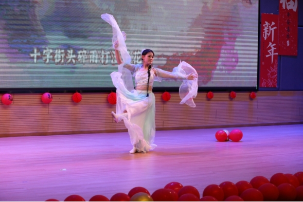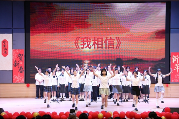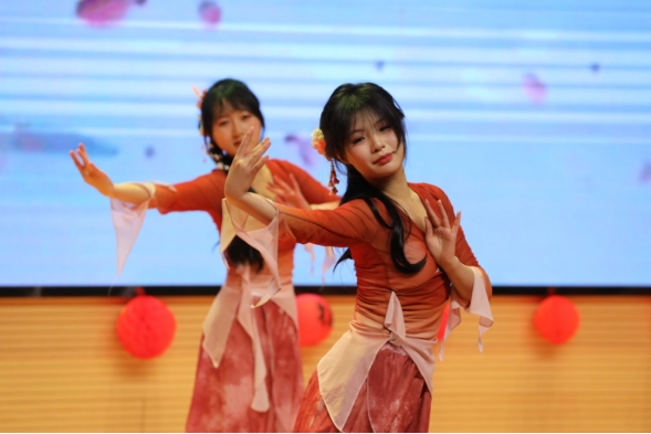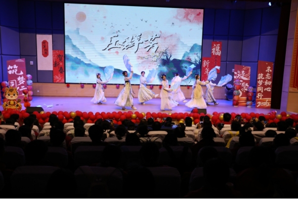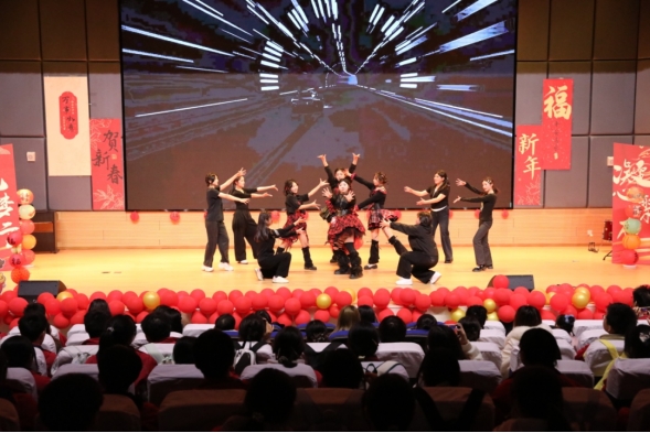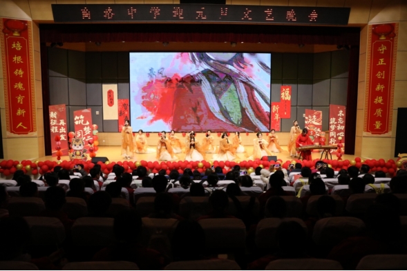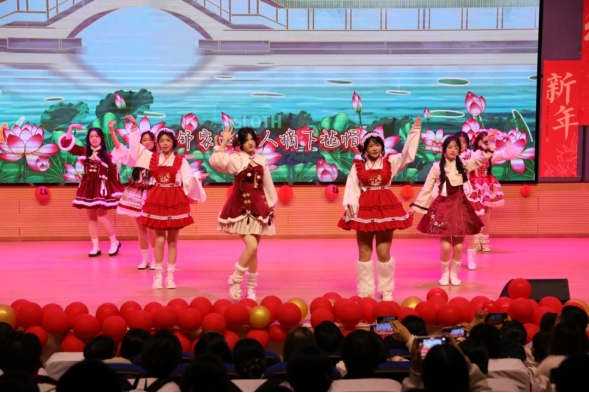 24 个节目轮番登场,舞蹈《春意红包》传递新春喜悦,《洛春赋》《流水桃花》尽显古典雅韵,《启明星》《DRAMA》迸发少年朝气;吉他弹唱《萱草花》温柔缱绻,小合唱《小美满》重温校园时光,《如愿》《光年之外》引发情感共鸣;歌舞《本草纲目》《红昭愿》融合传统与新潮,说唱《飘向北方》张扬逐梦豪情,心理剧《新生》传递成长力量,音乐剧《美丽的商中我的家》抒发母校眷恋,整台晚会歌舞交融,展示了同学们昂扬向上的精神风貌。