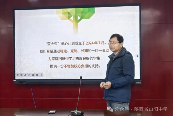 岁寒隆冬至,真情满人间。12月22日上午,爱心人士卢俊清先生专程从西安赶赴陕西省山阳中学,参加2025年冬季“萤火虫”计划访谈活动。本次活动在尚德楼三楼校务会议室温情启幕。