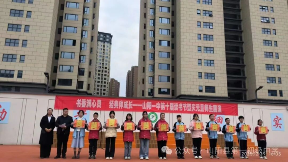 冬阳暖照,文脉绵延;书香漫卷,岁末情长。以“阅读润心书香致远,以书为伴不负青春”为主题的商洛市山阳县第一初级中学第十届读书节,自2025年11月启动以来,历经数月的文化积淀与活动浸润,于12月29日下午在学校大操场圆满落幕。本届读书节以“多元活动+深度参与”的形式,让书香弥漫校园,让阅读成为师生共同的精神追求。