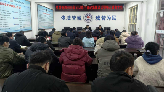 12月31日,商洛市丹凤县城市管理局召开2026年元旦、春节前廉政集体谈话暨警示教育大会,传达学习了丹凤县纪委办公室《关于做好2026年元旦春节期间纠“四风”树新风工作的通知》精神,局党组班子成员、机关各股室、局属各单位负责人参加会议。