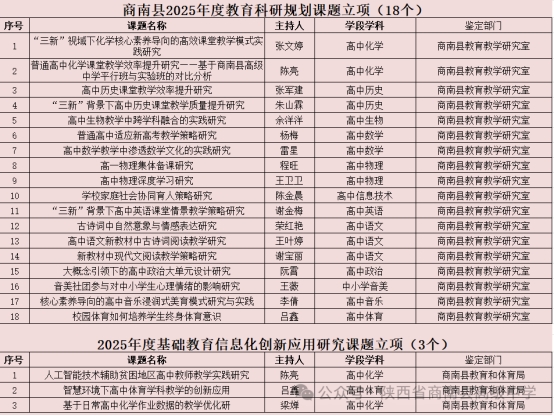 商洛市基础教育教学名师培养对象