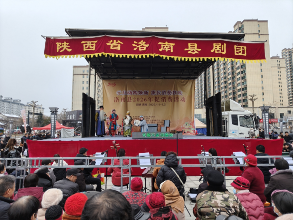 本土特色赋能消费,体验更添文化温度。活动深度融合洛南本土文化内核,美食区集结了洛南烩豆腐、手工挂面等本土风味小吃,文化惠民演出现场,秦腔、本土小戏等特色文艺表演轮番登台,让群众在购物消费的同时,沉浸式感受传统文化的魅力。“既能买到实惠的年货,又能看到原汁原味的秦腔表演,这样的元旦假期既接地气又有特色,太符合我们老百姓的胃口了!”现场群众刘兰英的感慨道出了不少群众的心声。