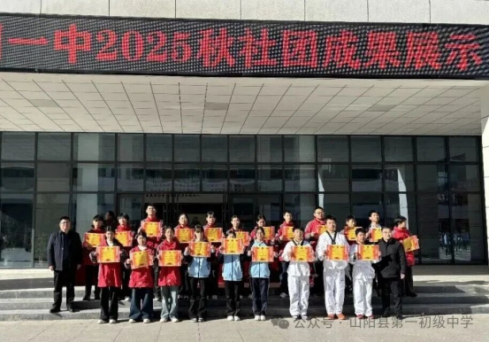 为深入推进“双减”与课后服务落地,丰富校园文化生活,践行“一生一特长”的素质教育理念,山阳县第一初级中学于2025年1月6日下午开展2025年秋社团活动成果考评展示,整个活动由教导处陈静主任负责策划组织实施。七、八年级全体社团齐聚亮相,在运动赛场、表演舞台、作品展区各展所长,勾勒出校园素质教育的生动图景。团为舞台,以才华为笔墨,共同绘就了一幅温暖而璀璨的迎新画卷。