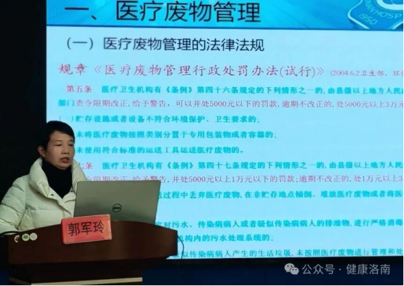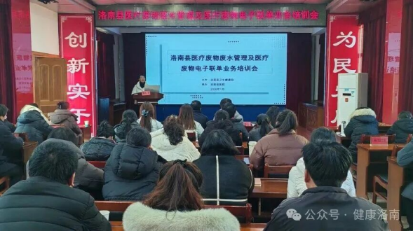 为深入贯彻《中华人民共和国固体废物污染环境防治法》《医疗废物管理条例》等法律法规要求,压实医疗机构主体责任,全面提升医疗废物、废水规范化处置水平及电子联单实操能力,2026年1月8日下午,商洛市洛南县卫健局在县医院医技楼五楼会议室组织开展医疗废物废水管理及医疗废物电子联单业务专题培训会。全县各医疗机构医废管理业务骨干共计60余人参加培训。