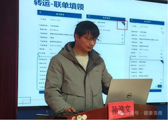 医疗废物电子联单操作是本次培训的重点内容。县医院院感科孙浩文通过现场演示、步骤拆解等方式,详细讲解了省级固体废物信息管理系统的基础信息填报、联单申请、转运接单、交接出库等全流程操作,涵盖电脑端与手机端的使用技巧,并对填报不及时、数据不准确等常见问题给出解决方案。培训强调,电子联单是医疗废物追溯管理的关键手段,各机构需严格落实“应收尽收,实收必扫”要求,确保废物转移全程可追溯、责任可追究。
