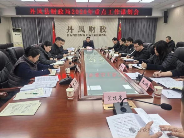 1月8日,商洛市丹凤县财政局召开2026年工作谋划会,深入学习贯彻中央经济工作会议和全国财政工作会议精神,系统谋划2026年重点任务。会议由局党组书记、局长杨龙主持,局党组领导班子成员、各股室(单位)负责人参加会议。会上,局机关各股室、局属各单位负责人结合岗位职责,认真谋划了2026年重点工作。