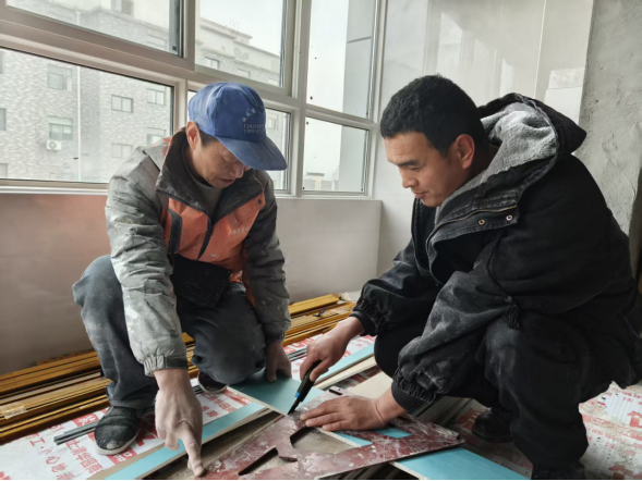 不仅如此,他还主动学习新型装修工艺,跟着年轻工友学看电子图纸、用测量仪器,“现在建筑行业更新快,不多学点儿本事,迟早会被淘汰。”袁博说。