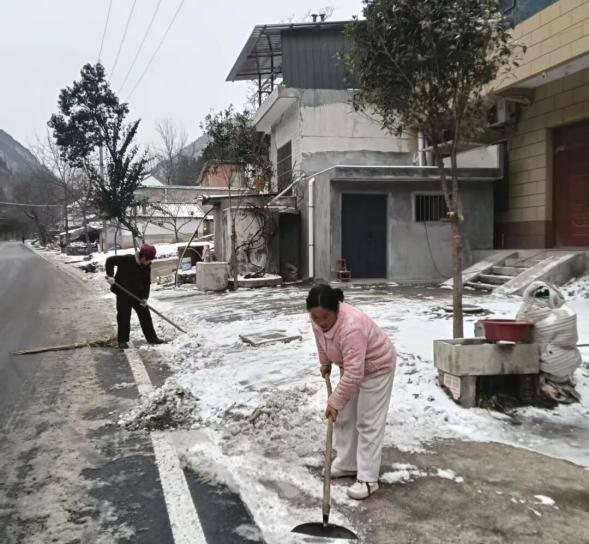 各村充分发挥基层党组织战斗堡垒作用和党员先锋模范作用,广泛动员公益性岗位人员、党员群众、志愿者等力量,聚焦242国道、镇村主干道陡坡、急弯及背阴易结冰路段等重点区域,全力开展扫雪除冰作业。