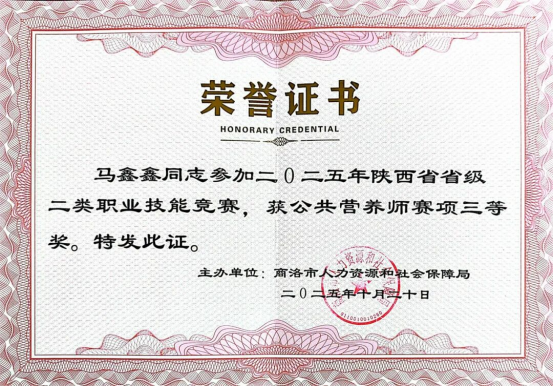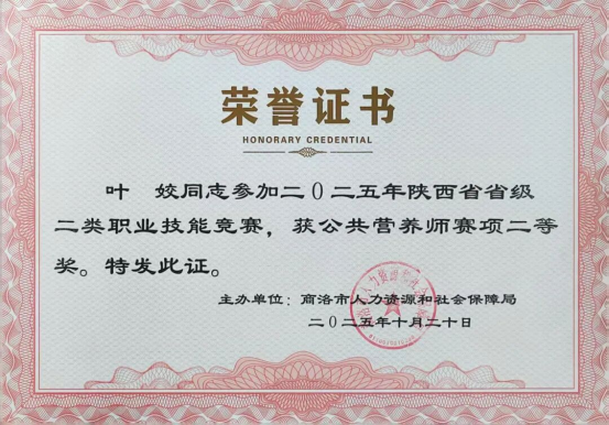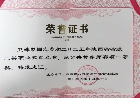 近日,2025年商洛市公共营养师职业技能竞赛圆满落幕。作为省级二类职业技能赛事,本次竞赛由市人社局、市职教办主办,商洛学院承办,来自全市高校、医院、餐饮等行业50余名选手同台竞技。商洛市中心医院临床技能培训中心精心组织,选派卫姝岑、叶娇、马鑫鑫、陈玉龙等四位选手备战参赛,凭借扎实的理论功底、过硬的实操技能和出色的临场表现脱颖而出,斩获一等奖、二等奖、三等奖,同步认定营养师高级技师,充分彰显了医院营养专业的过硬实力。