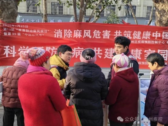 为进一步提升全民麻风病防治意识,消除社会歧视,保障麻风病康复者合法权益,在第73届“世界防治麻风病日”暨第39届“中国麻风节”来临之际,商洛市商州区卫生健康局联合区残联、区红十字会等多部门,组织区疾控中心(卫生监督管理所)和市区直医疗卫生单位于2026年1月23日9时在北新街电信大厦门口开展系列主题宣传活动。活动以“消除麻风危害,共筑健康中国”为核心,融合科普宣传、义诊服务,构建起“科学防控+人文关怀”的立体化宣传格局,取得显著成效。