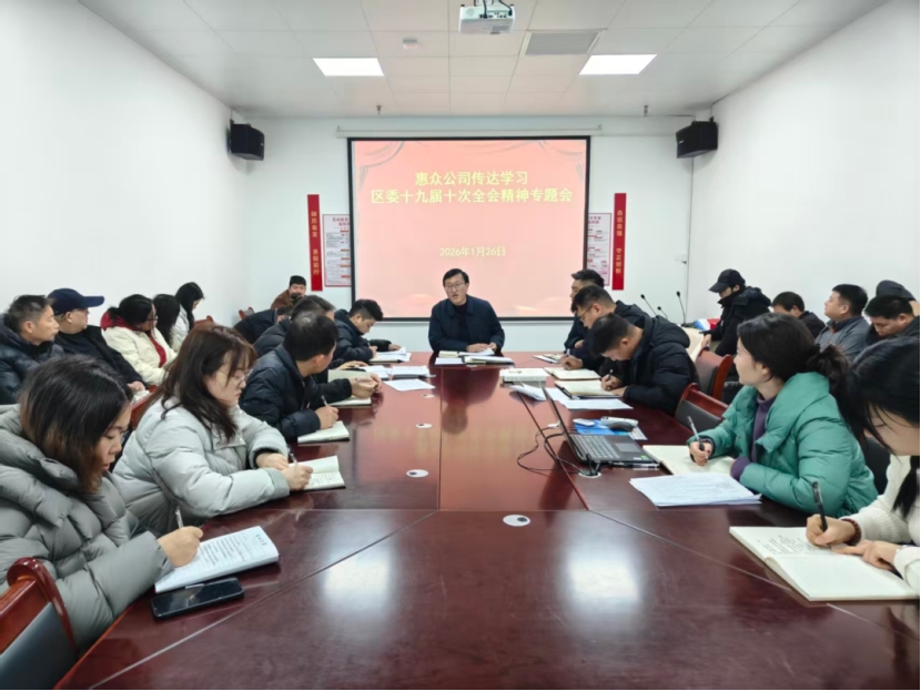 2026年1月26日上午,商州区惠众农村供水有限公司召开专题会议,传达学习中共商州区委十九届十次全会精神,并就贯彻落实工作作出部署。公司董事长、总经理任延波主持会议并讲话,全体员工参加。