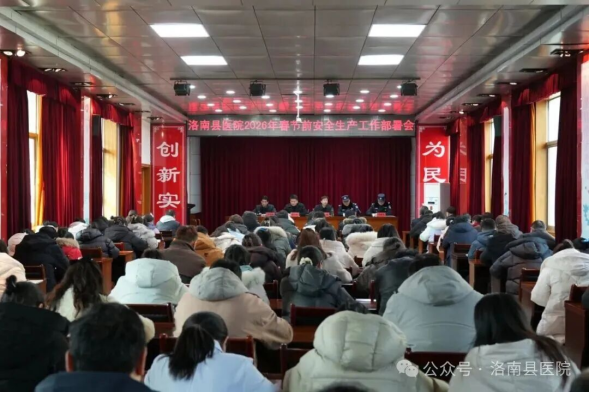 为切实做好春节期间安全生产保障工作,深入排查整治安全隐患,有效防范各类安全事故,确保节日期间医院平安稳定运行,1月27日下午,商洛市洛南县医院召开春节前安全生产工作部署会,并同步组织开展治安消防培训与实战演练。会议特邀县公安局城关派出所副所长冀喜良、包片民警张爱民及县卫生健康局李洛锋同志到会指导。会议由副院长郝少秋主持,党委副书记、副院长李军,全院临床、医技、行政后勤科室负责人,不值班医护人员及后勤保障全体人员共计160余人参加。
