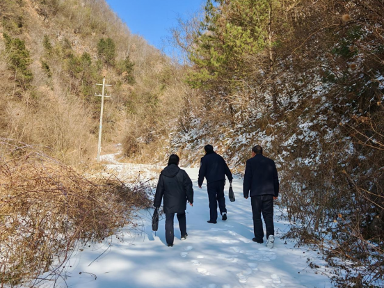 解矫当日,被积雪覆盖的山路湿滑难行,部分路段还因低温结冰,车辆无法前往社区矫正对象所在地。“解矫宣告是矫正工作的关键环节,决不能因天气耽误!”工作人员始终秉持着这份信念,毫不犹豫背起档案材料,毅然徒步前行。脚下积雪覆地,工作人员相互搀扶、步步踩实,如期抵达刘某某家中。稍作休整后,依规开展解矫宣告工作。