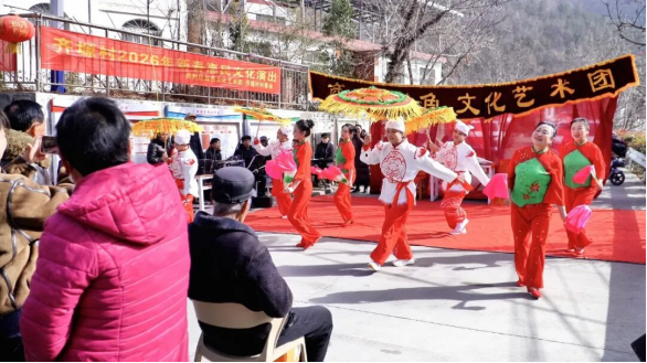 村党群服务中心另一侧,暖意融融的文化惠民活动成为村民的“欢乐主场”。商州区老区建设促进会红色文化艺术团带来的开场舞《欢乐秧歌迎新春》、现代眉户戏《屠夫状元·许婚》、独唱《红岩选段·含着热泪绣红旗》及舞蹈《美丽中国》《欢乐中国年》等节目精彩纷呈,引得村民喝彩不断。