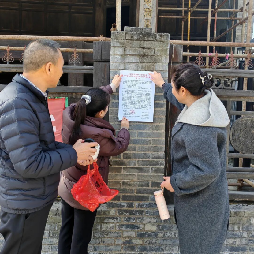 结合春节临近,群众祭祀、庆祝活动增多的特点,检查工作特别加强了安全预防宣传。巡查人员在文保单位及周边醒目位置张贴了《关于在文物保护单位及保护范围内禁止燃放烟花爆竹的公告》《关于禁止在文物保护单位保护范围内进行滥占乱建等违法活动的公告》等,并积极向周边居民、游客及文保员进行政策解释与安全知识普及,明确文保单位及控制地带内严禁燃放烟花爆竹、堆放易燃物、私搭乱建等行为,引导群众共同参与文物安全保护,文明开展节庆活动,从源头上减少安全风险。