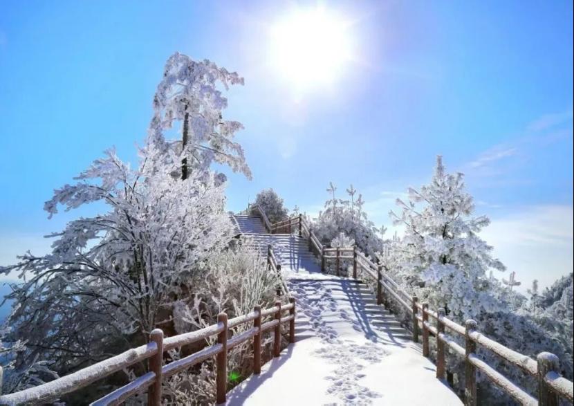 云盖观听风,雾淞长廊看雪,凌云亭等日出……这里是现实版的仙侠世界!享春节限定优惠套票、穿汉服打卡拍照,仿佛一脚踏进武侠片场。
