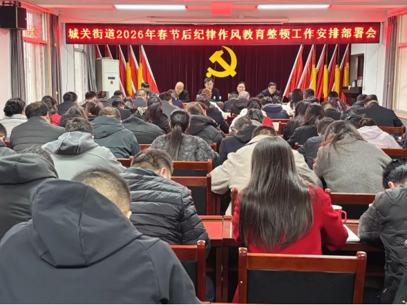 2月24日,商洛市商州区城关街道召开2026年春节后纪律作风教育整顿工作安排部署会。街道班子成员、科级领导、机关全体干部、18个社区(村)党委(支部)书记参加会议。