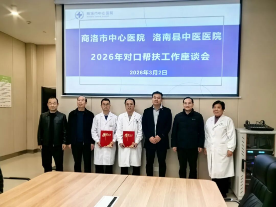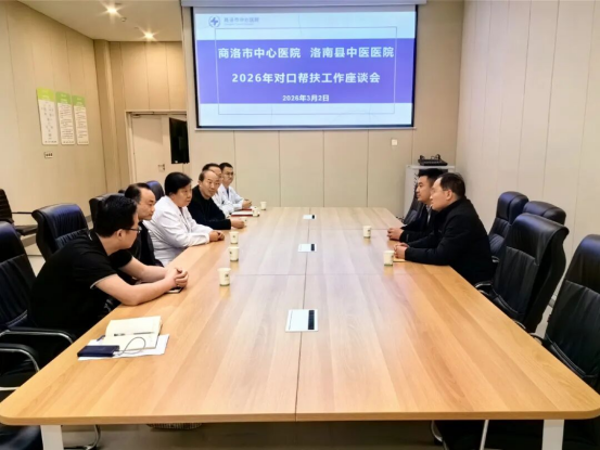 3月2日,洛南县中医医院副院长梁焕、医务科副科长刘远军一行前来商洛市中心医院,就进一步深化对口帮扶工作进行实地调研与交流。商洛市中心医院副院长屈建强及医务部、儿科、神经外科等相关科室负责人、2025年对口帮扶洛南县中医医院帮扶队员代表参加了此次活动。