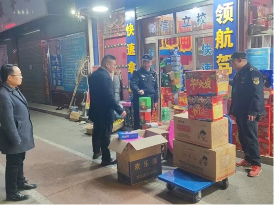 深入排查整治,全面消除风险隐患。组织镇村干部、网格员、执法力量开展拉网式排查,对全镇21家合法零售点逐一“过筛子”,重点检查资质证照、进货渠道、储存条件、消防设施、警示标识等,严格落实实名购买和流向登记制度,坚决杜绝非正规渠道进货、超量储存、店外摆放等行为。行动以来,开展集中检查4次、部门联合检查7次、村级自查9次,发现并整改隐患10余项。针对“下店上宅”“前店后宅”、烟花爆竹与灶房相邻存放、灭火器缺失、销售过期产品或“窜天猴”等高危品类问题,坚持“教育+整改+处罚”相结合,先提醒教育、后限期整改,对拒不配合的依法采取停业整顿、取消资格等措施,形成有力震慑。同时,对沿街商铺、闲置院落、集贸市场等重点区域开展高频巡查,严厉打击非法生产、储存、销售、运输行为,依法收缴非法产品,遏制违法违规苗头。