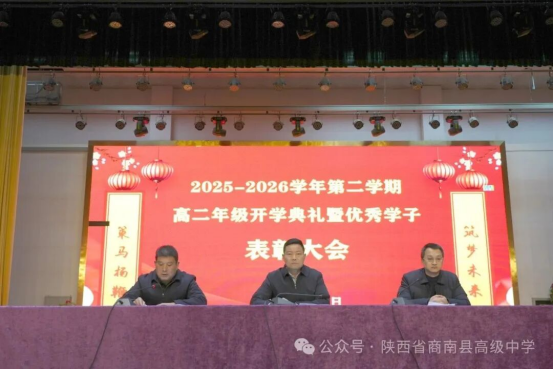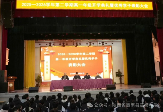 春潮涌动处,奋进正当时。为精准锚定新学期育人目标,发挥榜样示范引领作用,近日,商南县高级中学分时段、分批次在学校大礼堂举行2025-2026学年第二学期开学典礼暨优秀学子表彰大会。高一、高二、高三全体师生分场参会,学校领导班子成员、各年级负责人出席活动。