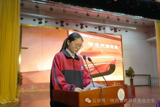 高三学生代表王嘉懿、周晋依次发言,分享学习心得与备考感悟,号召同学们以先进为榜样,以全力以赴、不负韶华的决心,传递出“百日竞渡、誓创辉煌”的昂扬斗志。