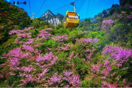 觉得登山太累?没关系,99元的优惠套餐包含往返索道!坐在舒适的索道轿厢里,随着缆车缓缓上升,春日的天竺山全景尽收眼底。脚下是绵延铺展的紫荆花海,层层叠叠如紫色云霞般涌动;远处是连绵起伏的青山,山峦起伏间隐约可见村落点缀其间,几缕炊烟袅袅升起,宛如一幅恬淡宁静的田园画卷。这份悠然与惬意,只有亲身乘坐才能体会。