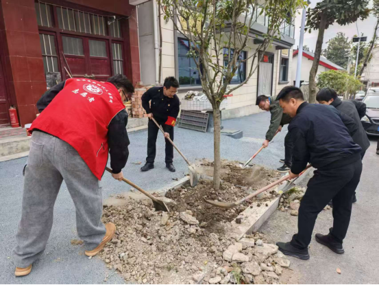 活动现场,红马甲与初春的绿意交相辉映,构成一道动人的文明风景线。大家分工明确、协作无间,挥锹铲土、扶苗定植、填坑踩实、浇灌培土,每一个环节都严谨细致、有条不紊。现场一派热火朝天、生机盎然的忙碌景象。一棵棵新栽的苗木迎风而立、错落有致,不仅为灵龙街道注入了蓬勃生机,更展现出米粮党员干部团结协作、担当实干的精神风貌。