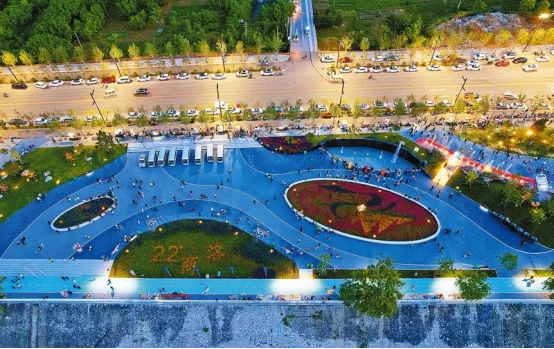 商洛市商州区南秦河生态公园依水而建,河水清涟荡漾,波光粼粼,游鱼嬉戏于浅滩。两岸草木葱茏,繁花叠翠,苍松挺拔。休闲步道蜿蜒舒展,串联起花海绿地、休闲广场与生态湿地。水雾氤氲,喷泉灵动,智能设施隐于景致之中。四时鸟语花香,风光怡人,山水相映,城绿相融,尽显自然生态与城市休闲的和谐之美。