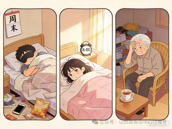 固定上床与起床时间,周末作息偏差不超过1小时,稳定生物钟。