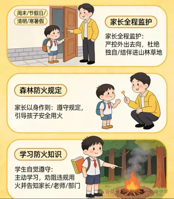 为切实保障全体学生的生命安全,筑牢校园及周边森林防火安全防线,落实家校共育责任,学校特向全体学生及家长发出郑重倡议,恳请家校携手,严守防火规定,共护平安家园,请配合做好以下工作。