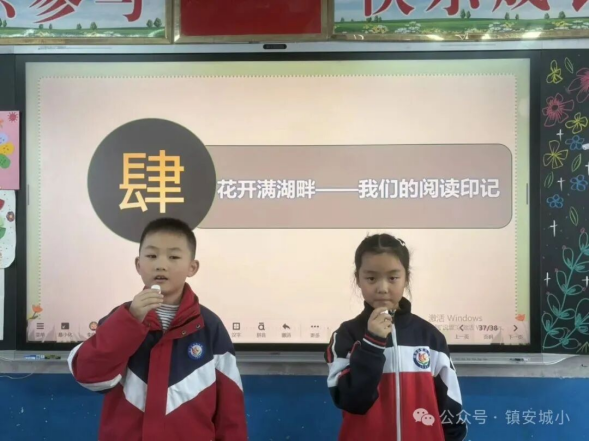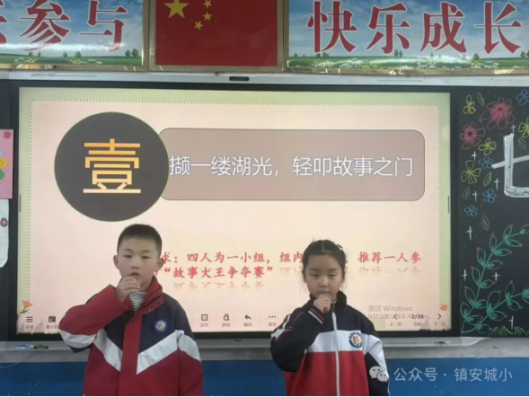 故事润心,童声传情阅读最美的姿态,是倾听与讲述。活动第一环节“撷一缕湖光,轻叩故事之门”温暖开启。孩子们化身小小朗读者与故事家,依次站上分享台,用清澈稚嫩的声音,讲述三本读物中的精彩篇章。从《七色花》里神奇的魔法与善良的选择,到《湖水睁着明亮的眼睛》中自然的灵动与生命的美好,再到《愿望的实现》里亲情的温暖与成长的感悟,每一段讲述都真挚动人,每一个故事都直抵人心。孩子们在故事中感受真善美,在文字中汲取力量,让经典浸润心田,让书香伴随成长。