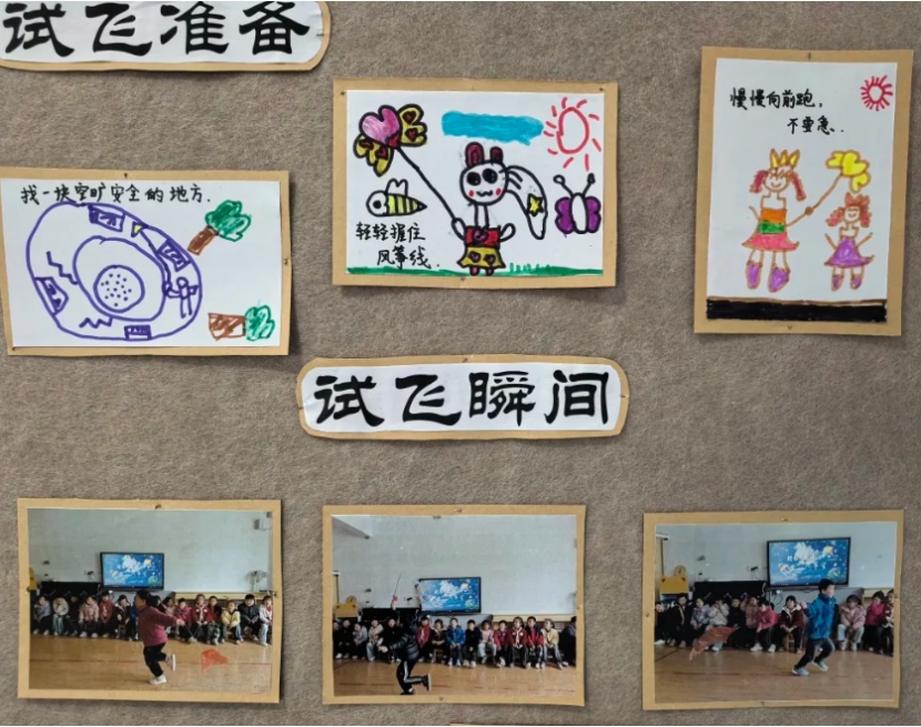 亲子携手,以环保材料为底,用色彩与创意装点,每一只手工风筝,都藏着亲子间的温情,也承载着对环保、对民俗的理解。从初识风筝到巧手制作,从室内试飞到调整优化,记录着孩子们探索、实践、成长的每一步,让主题课程落地生花。