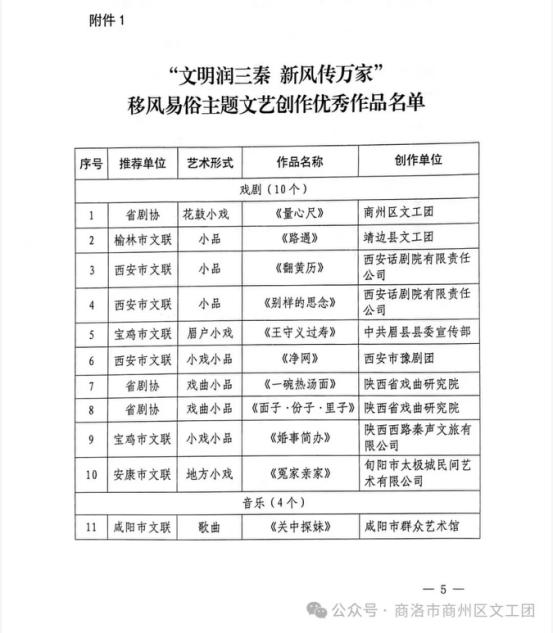 近日,从陕西省文学艺术界联合会传来喜讯:在全省“文明润三秦 新风传万家”移风易俗主题文艺创作活动评审中,商洛市商州区文工团原创花鼓小戏《量心尺》从全省230件参赛作品中脱颖而出,成功入选戏剧类优秀作品,是商洛市、商州区文艺创作的又一重要成果!