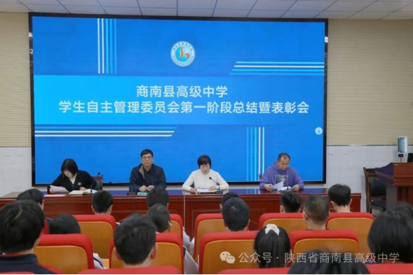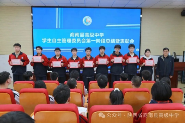 凝心聚力促管理,深耕细作再前行。本次总结表彰培训会既是一次复盘的总结会,更是一次蓄力奋进的部署会、赋能成长的培训会。下一步,陕西省商南县高级中学学生自主管理委员会将以本次会议为新起点,正视短板、细化标准、规范流程、精进能力,以更严谨的态度、更务实的作风、更饱满的热情参与校园自主管理工作,充分发挥学生自我管理、自我教育、自我服务的作用,坚守初心、履职尽责,全力守护有序、文明、和谐的校园环境,持续助推学校德育建设与校园管理水平、育人质量稳步提升!