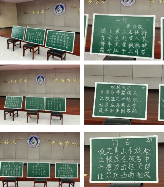 选手们屏气凝神,在黑板上默写自选古诗。一笔一画,工整规范;一撇一捺,尽显风骨。评委从书写规范、工整美观、实用清晰三个维度现场打分,真实展现了教师们日常教学中的板书硬实力。