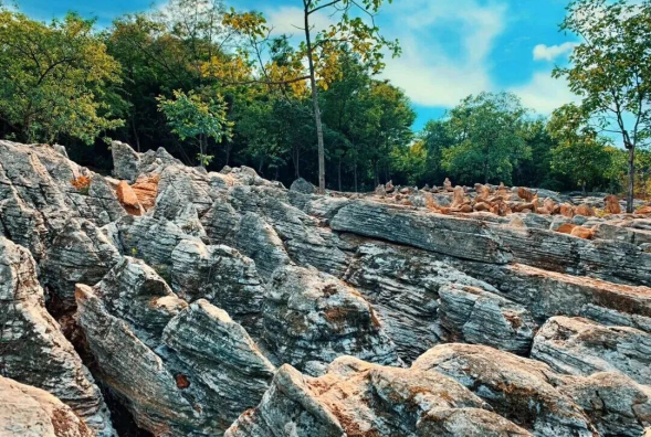 在秦岭江山景区,藏着一片形成于5.5亿年前的海石芽石林景观。那是远古海洋退去时留给大地的情书。岩石经过亿万年的冲刷,千姿百态,仿佛海底龙宫露出了水面。