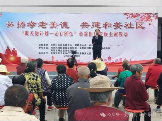 为传承孝老爱亲传统美德,营造敬老助老、邻里和睦的社区氛围,4月27日,商洛彩虹公益中心、商洛市曙光应急救援协会、商州网络联盟公益事业部、商州网络联盟文体宣传小分队等多家爱心单位走进静泉社区,共同开展“银天使计划·老有所忆”公益照片发放主题活动,社区老年人、志愿者共100余人参与活动。