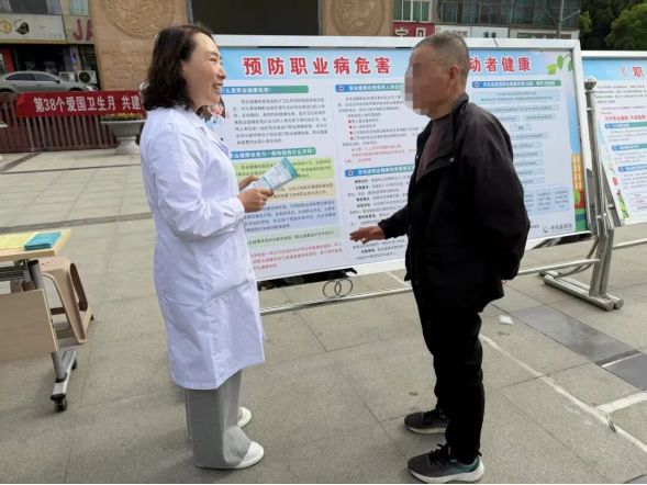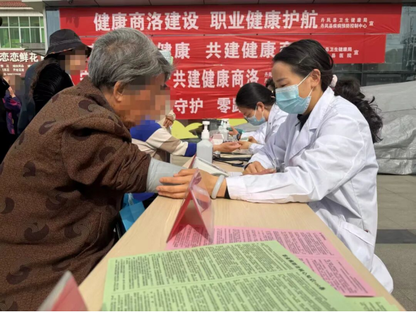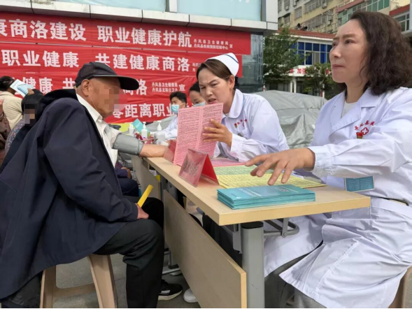 活动以“守护职业健康 共建健康商洛”为主题,通过悬挂横幅、发放《职业病防治知识读本》、职业病宣传折页等宣传资料及现场义诊增强广大劳动者掌握职业病防治技能,提升群众科学防治职业病能力。工作人员向过往群众详细解读职业病防护的必要性和目的,现场接受群众关于职业病防护相关知识咨询。同时,县医院医务人员为前来咨询的群众免费开展义诊,其他4家医疗卫生单位为群众测量血压、血糖等,倡导全社会关心关注关爱劳动者健康。