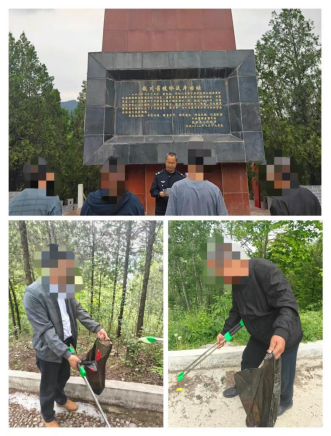 教育学习结束后,矫正对象在前坡岭革命战斗遗址开展卫生打扫活动。大家分工协作,认真捡拾周边垃圾、杂物,擦拭纪念碑,用实际行动守护红色阵地,践行公益担当。