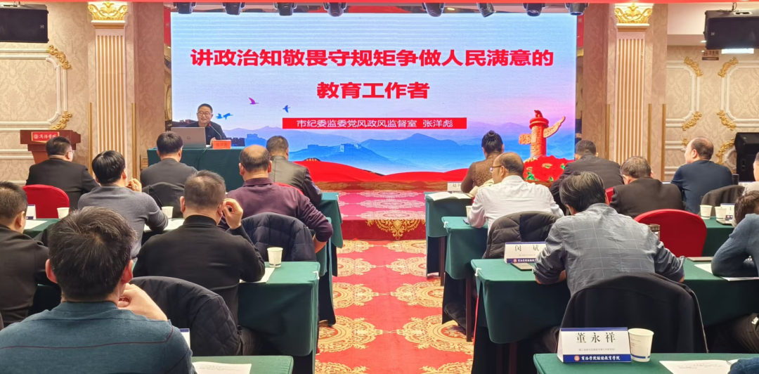 为落实全面从严治党主体责任,强化压力传导和警示教育,攻坚决胜教育领域群众身边不正之风和腐败问题集中整治工作和“校园餐”专项整治工作。近日,商州区教体局邀请商洛市纪委监委党风政风监督室负责人以《讲政治知敬畏守规矩争做人民满意的教育工作者》为题,为全区初(高)中校长、中心小学校长、中心校校长、区教体局班子成员、各股室负责人共计100余人,开展了党风廉政建设专题警示教育培训。