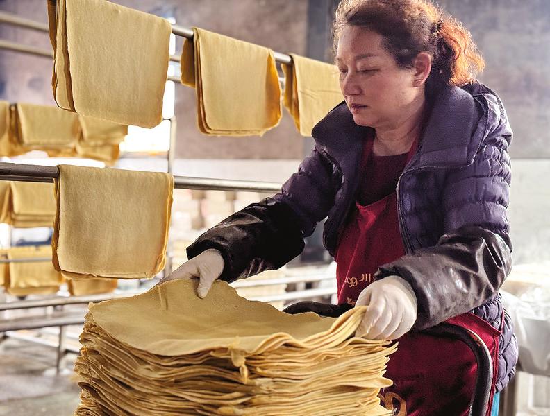 12月4日,洛南县城关街道杨川社区的豆腐加工厂内机器轰鸣,一派忙碌景象。