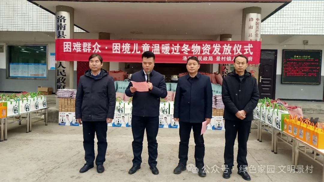 为了让辖区的困难群众和困境儿童在寒冬中感受到党和政府的温暖,12月12日,洛南县民政局联合景村镇人民政府开展困难群众·困境儿童温暖过冬物资发放仪式,全面做好困难群众冬季取暖和温暖过冬工作。县政府副县长赵斐出席活动并讲话,民政局党组书记、局长陈建国和景村镇党委书记苏赟、景村镇镇长孙江华参加活动。