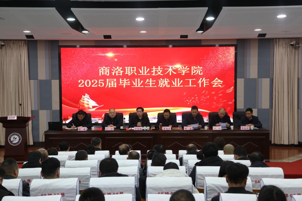 12月19日,商洛职业技术学院2025届毕业生就业工作会在A102报告厅召开,特邀商洛市人力资源和社会保障局四级调研员方宪遵、市人才交流服务中心副主任董毅莅临指导。该校党委书记贾意有出席并讲话。学校班子成员、各部门负责人、二级学院院长、副院长、院办、学工办主任,学生处全体人员和全体辅导员参加。会议由校长刘勇主持。